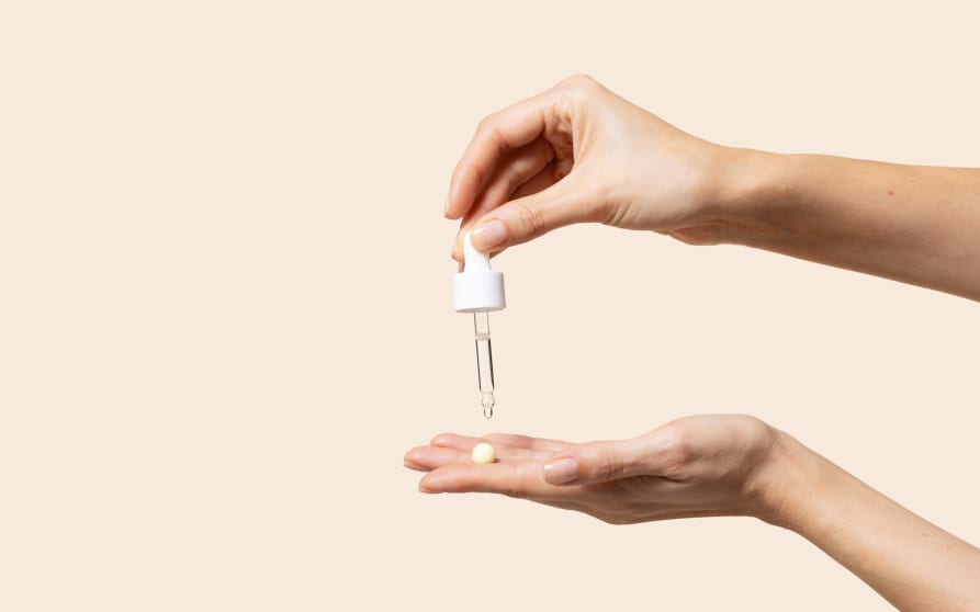 Prélever la perle : placer une perle dans le creux de la main propre et sèche (dose suffisante pour le visage et le cou).