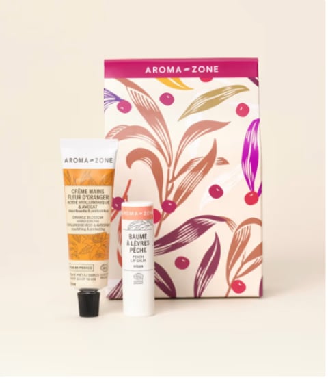 Ce coffret est une véritable pépite à glisser au pied du sapin. Il renferme deux soins iconiques d’Aroma-Zone aux textures sensorielles et aux senteurs réconfortantes : le baume à lèvres Coco et la Crème mains Thé de Noël. Pensé pour hydrater et sublimer la peau, il associe efficacité naturelle et plaisir d’utilisation. Un duo à petit prix qui fait toujours son effet et promet un moment beauté aussi doux qu’un matin de Noël.